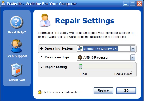 PCMedik - это небольшая программа, предназначенная для настройки параметров и оптимизации работы операционных систем Windows, позволяет уменьшить количество зависаний, "падений" и т.д. Вся работа с программой осуществляется посредством простого интерфейса. Требуется лишь указать операционную систему (Windows XP, например), производителя процессора (Intel, AMD, другой) и выбрать, что необходимо сделать: "вылечить" или "вылечить и оптимизировать". После применения PCMedik может заметно возрасти скорость работы приложений в среде Windows. |